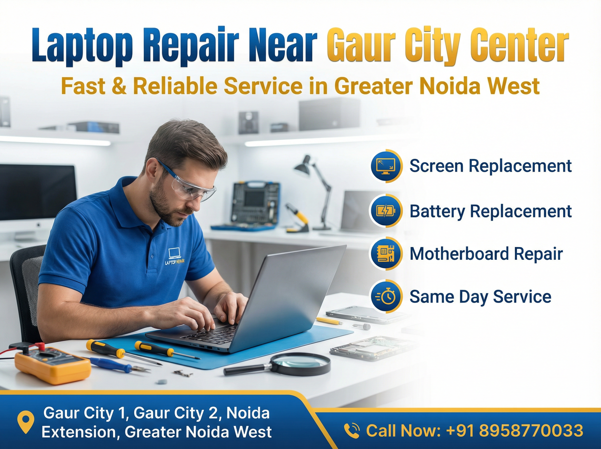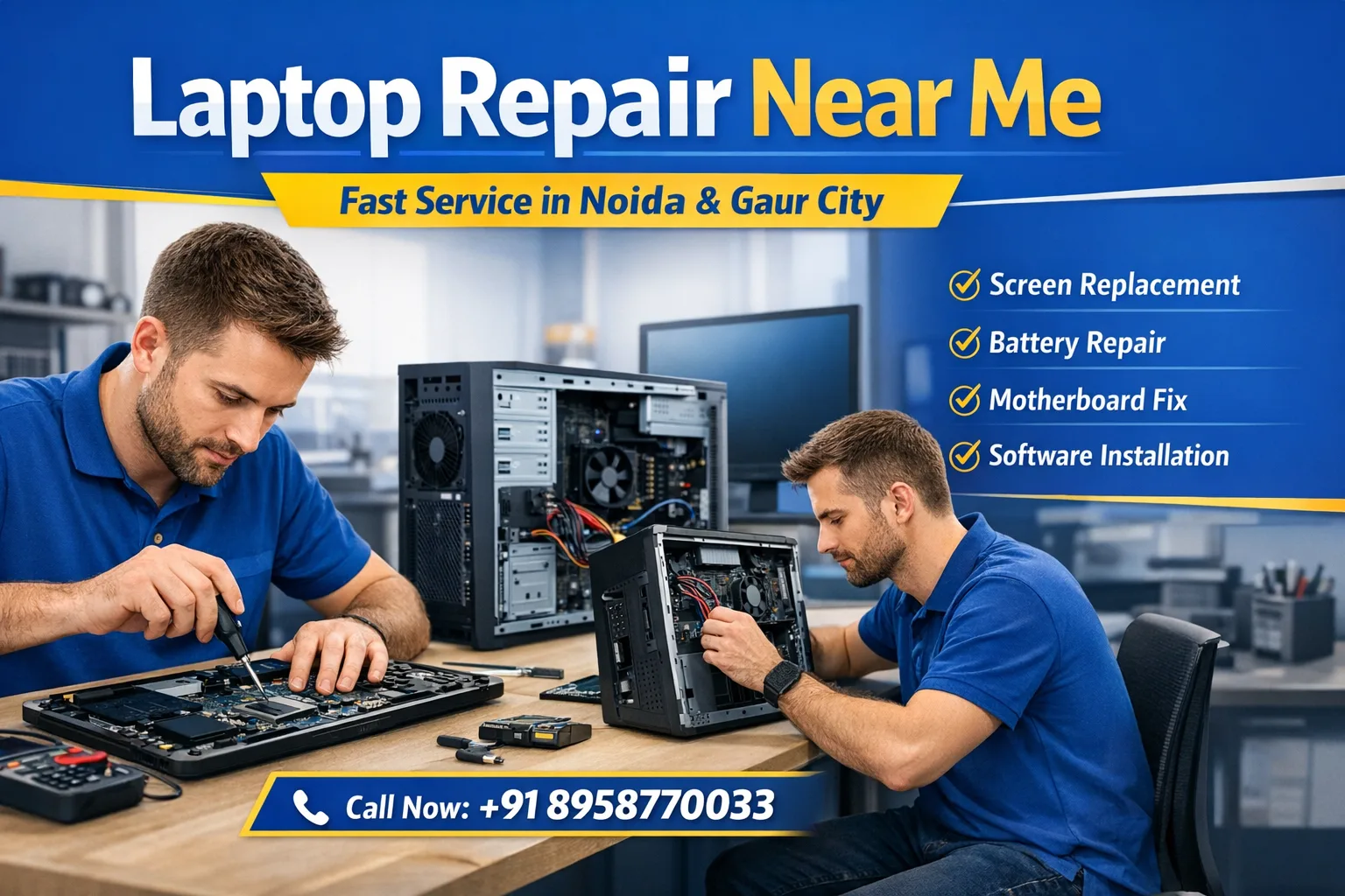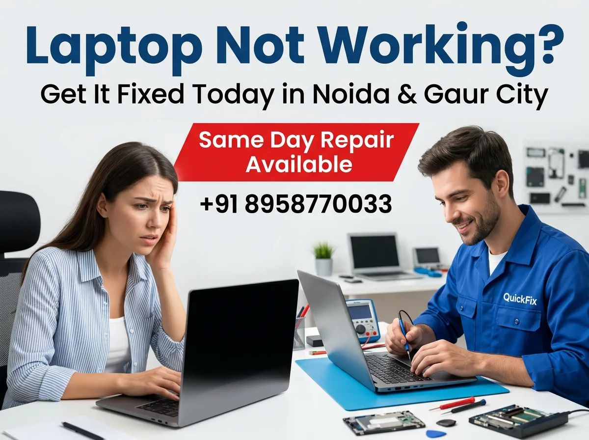 Need fast and reliable laptop repair in Noida? We’re here to help. Whether you’re facing a hardware issue, software problem, or need an upgrade, our expert technicians provide door-to-door laptop repair services across Noida and Greater Noida.